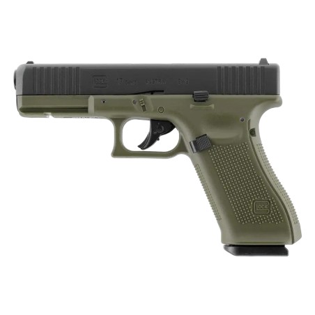 Descriptif | Le Glock 17 Gen5 présente une structure de couleur verte, Black Battlefield Green, avec culasse noire et commandes assorties. Cette réplique airsoft CO2 dispose d'une culasse en métal, d'un blowback puissant et d'un chargeur tout-en-un. Elle intègreune sécurité automatique de détente, une sécurité coulissante et un rail Weaver sous le canon pour l'ajout d'accessoires. Compatible avec la majorité des holsters courants du marché. |