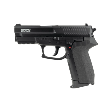 Fabriqué par Cybergun, cette réplique du Swiss Arms MLE 2022 NBB CO2 présente :