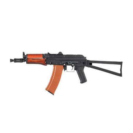 Modèle corps métal de la célèbre AKS74 en version courte, avec sa crosse repliable en métal et son garde-main en bois. Equipé d'origine d'un rail latéral pour le montage d'optique pour AK.
