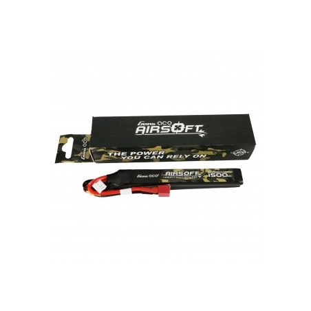 La batterie Gens ace 25C 1500mAh 2S1P 7.4V Airsoft Gun Lipo avec prise Mini Tamiya  est spécialement conçue pour alimenter les répliques airsoft.