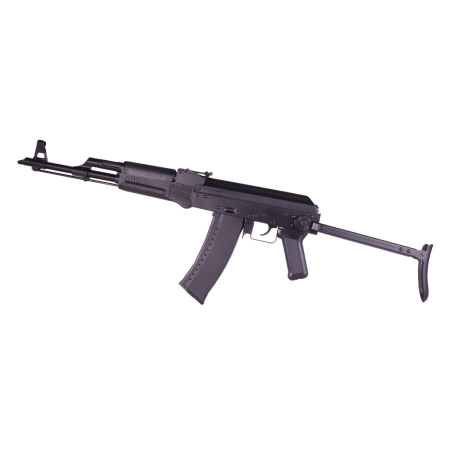 L'AKM est une variante modernisée commune de l'AK47. Entrée en service dans l'armée soviétique en 1959, elle est toutefois très largement répandue dans le monde grâce à sa conception simplifiée pour la production de masse. L'AKMS, "S" pour Skladnoy (pliable), indique que ce modèle dispose d'une crosse rabattable par rapport au modèle standard AKM.